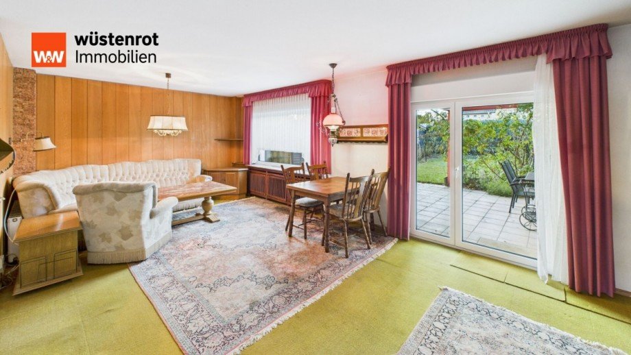 Vom Eingangsbereich mit praktischem Gäste-WC gelangen Sie in die separate Küche und das Herzstück des Hauses: das lichtdurchflutete Wohnzimmer. Große Fensterfronten öffnen den Blick in den eigenen Garten und sorgen für eine freundliche Atmosphäre. Die Terrassentür sowie das große Fenster (2017) zum Garten wurden bereits erneuert und präsentieren sich in zeitgemäßem Zustand. Von hier aus treten Sie direkt auf die Westterrasse - der ideale Ort, um nach Feierabend die Abendsonne zu genießen.